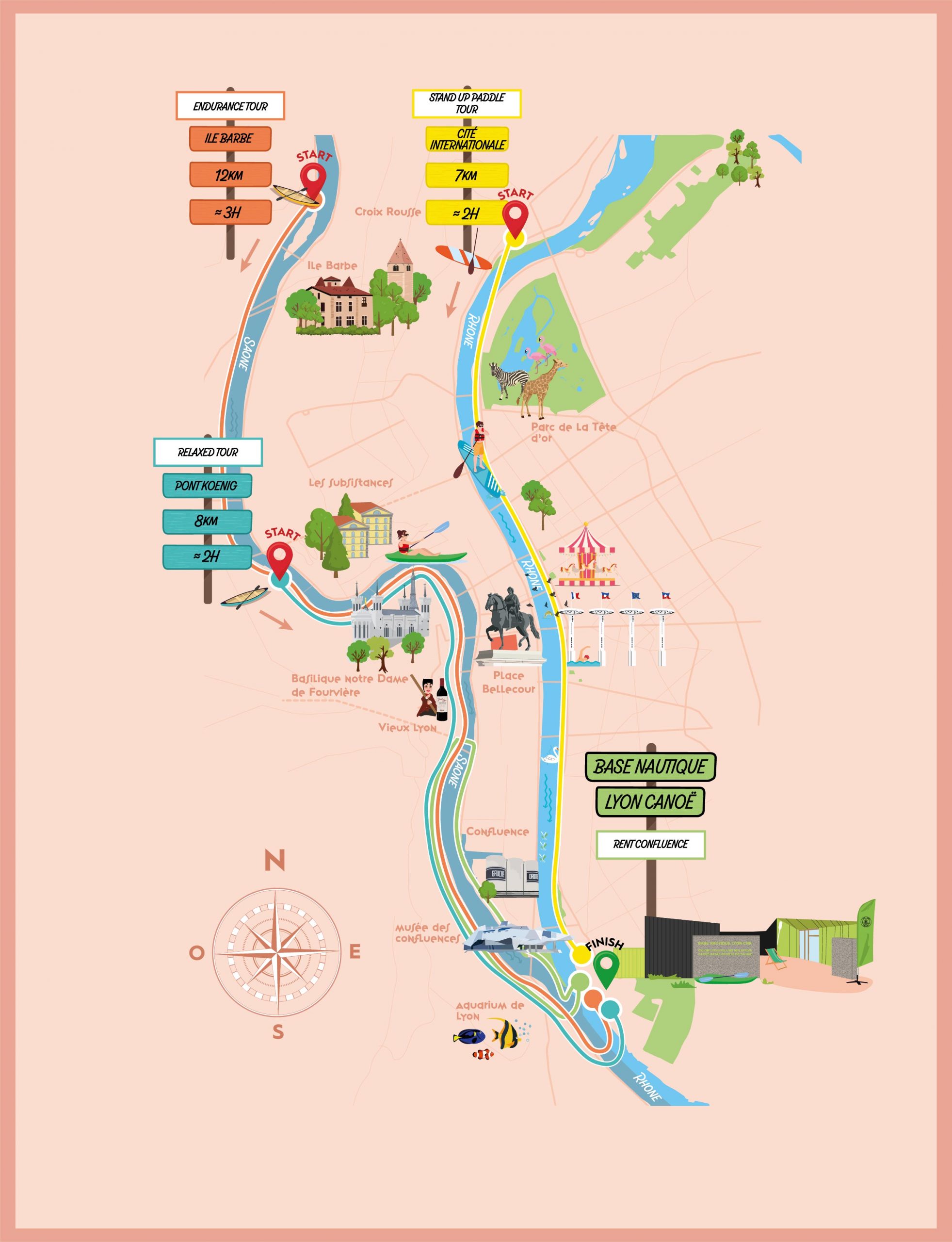 Our team welcomes you to our nautical base in the heart of Parc des Berges, right across from the Musée des Confluences, for guided or rental activities along the Saône and Rhône rivers.